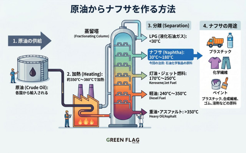 繊維製品のリスクを理解するためには、まず「ナフサ(粗製ガソリン)」という言葉を避けて通ることはできません。
