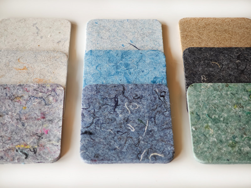 素材を切り替える際に、多くの企業が懸念するのが「品質」です。Rebornfiber®は、独自の技術によって廃棄繊維を高品質なフェルト状の素材へと再生しています。 特に、吸音材としての活用(Rebornfiber® Q-on)や、建築用の断熱材、クッション材としての性能は高く評価されており、これまで石油由来のポリウレタンやポリエステルが担っていた役割を、十分に代替することが可能です。